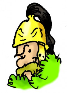 – In dezelfde strip dragen de Romeinse soldaten ijzeren helmen en platenharnassen. Dat zijn eigenlijk uitrustingen van minstens een eeuw later. In de tijd van Caesar droegen de legioensoldaten eerder bronzen helmen en maliënkolders.