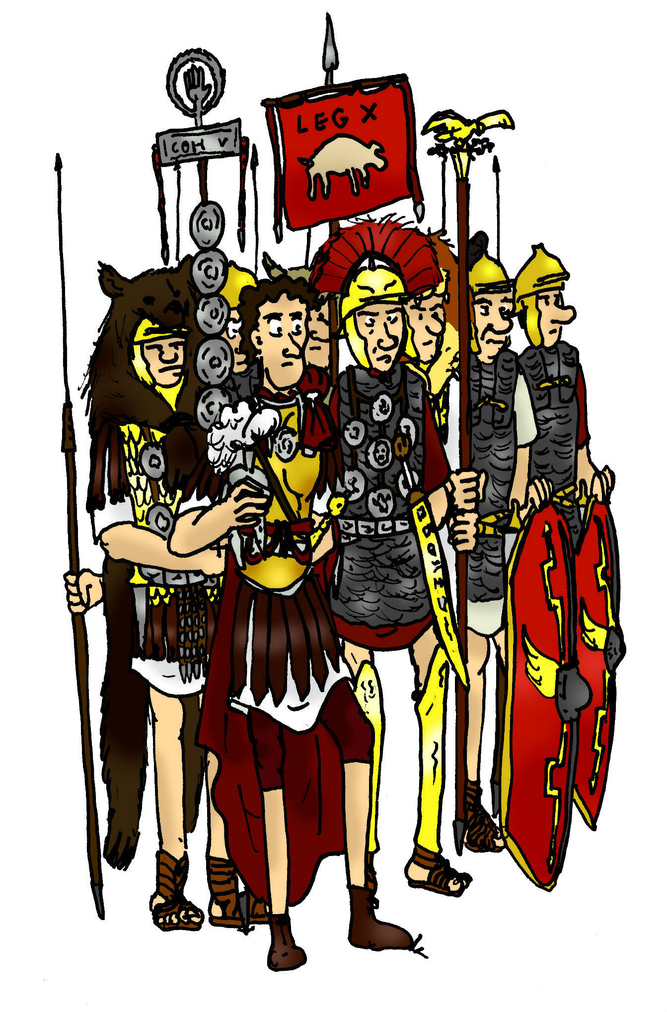 Caesars soldaten. De soldaten van Caesar zijn erg trouw aan hun grote bevelhebber, maar Caesars favoriet is toch wel het Tiende Legioen. Caesars populariteit bij zijn soldaten maakt hem niet populair bij een aantal senatoren. Die Caesar is wel erg machtig geworden door zijn verovering. Het oude Driemanschap werkt intussen niet meer, want tegen het einde van de oorlog is Crassus al dood en Pompeius is ook niet erg blij met Caesars groeiende macht. Uiteindelijk geeft de Senaat Caesar het bevel om zijn taken neer te leggen en zonder zijn leger naar Rome terug te keren. Caesar vertrouwt het zaakje niet en gaat mét zijn leger naar de hoofdstad. Zo breekt er een burgeroorlog uit…